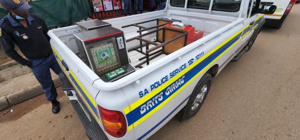 Four (4) Bingo Merry Roulette gambling machines confiscated, SAPS arrested two (2) shop owners, registered cases, issued offence notices and affidavits were submitted to Brits Police Stations for further investigations. The owners received a fine of R2 500 each.